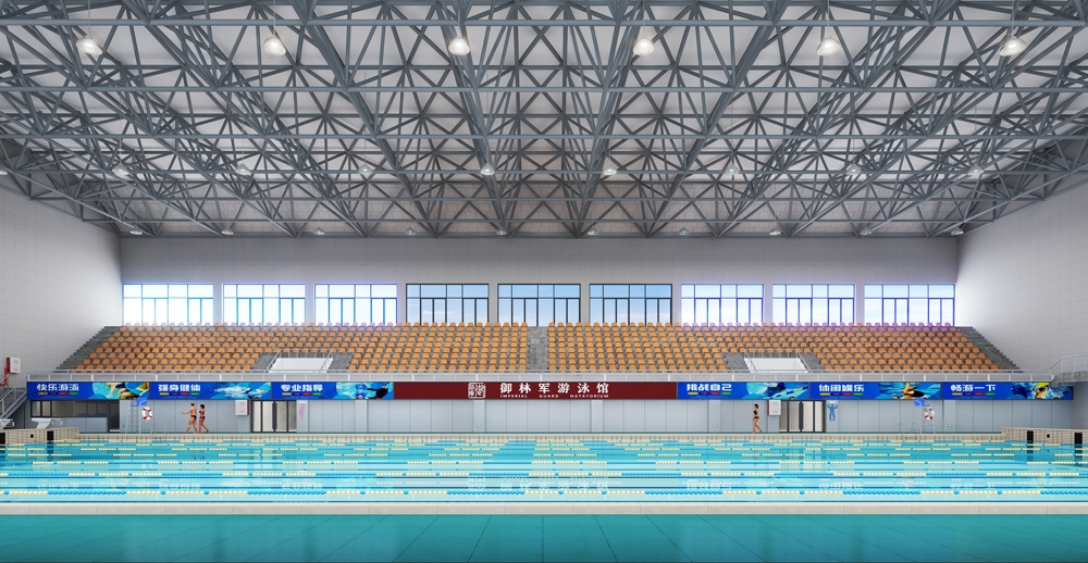 50米國標泳池,其水質清澈透亮,仿佛置身于碧海藍天之中。