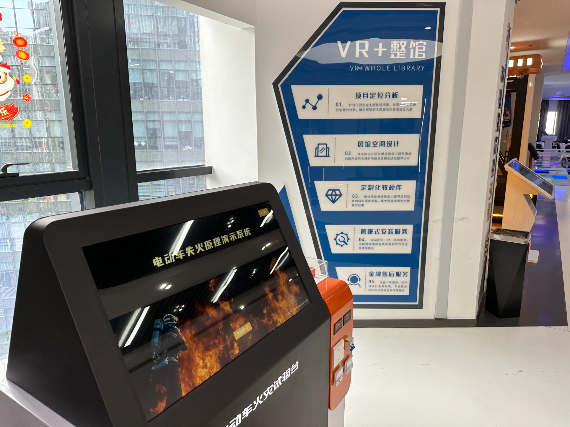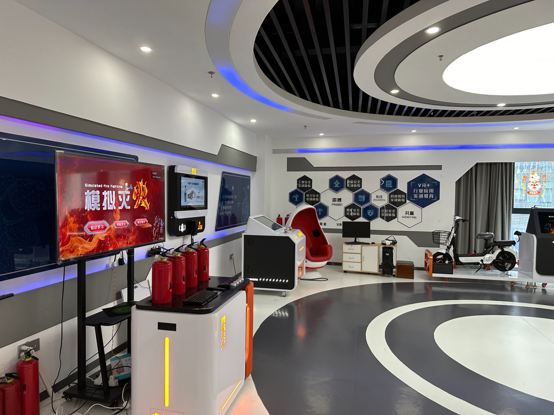 既然是智能化安全體驗館,怎么能少了VR設備呢!第三個展區便是今天的壓軸戲---VR安全體驗區。VR與安全體驗結合的優勢是它可以在虛擬現實中展現真實施工事故發生的場景,讓體驗者學習正確的安全施工方法,身臨其境,鍛煉體驗者應對事故發生的應急能力,通過虛擬現實更深刻的增強體驗者的施工知識。圖為雅努思員工穿戴VR設備進行安全體驗。