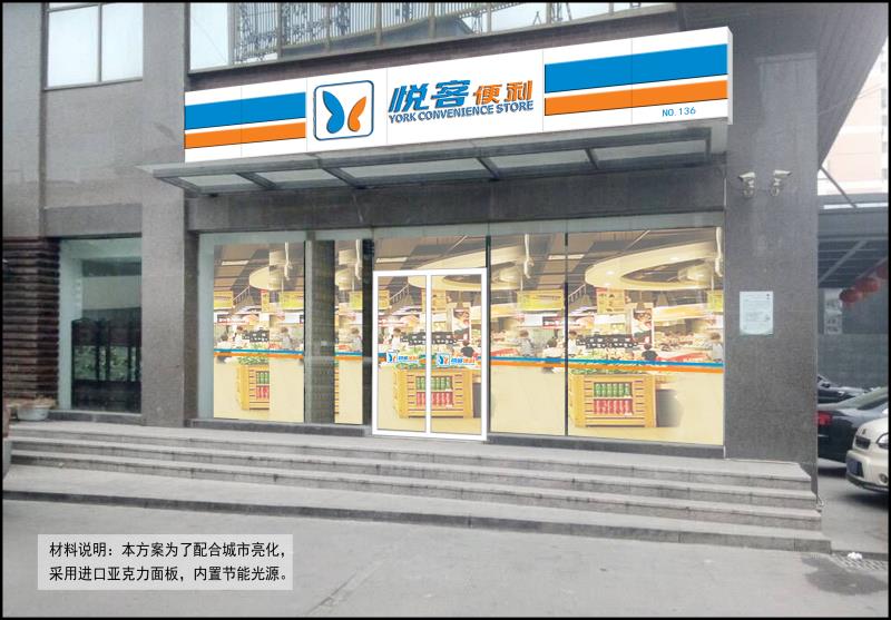 雅創空間成功服務悅克便利連鎖超市100余家門頭及亮化工程,現已圓滿完成任務,悅客便利是以便民、快捷服務性為宗旨得便利店。擁有全新的管理模式,完善的技術,周到的服務,卓越的品質。此次門頭及亮化工程的合作得到了悅客領導層的一致認可和稱贊。
