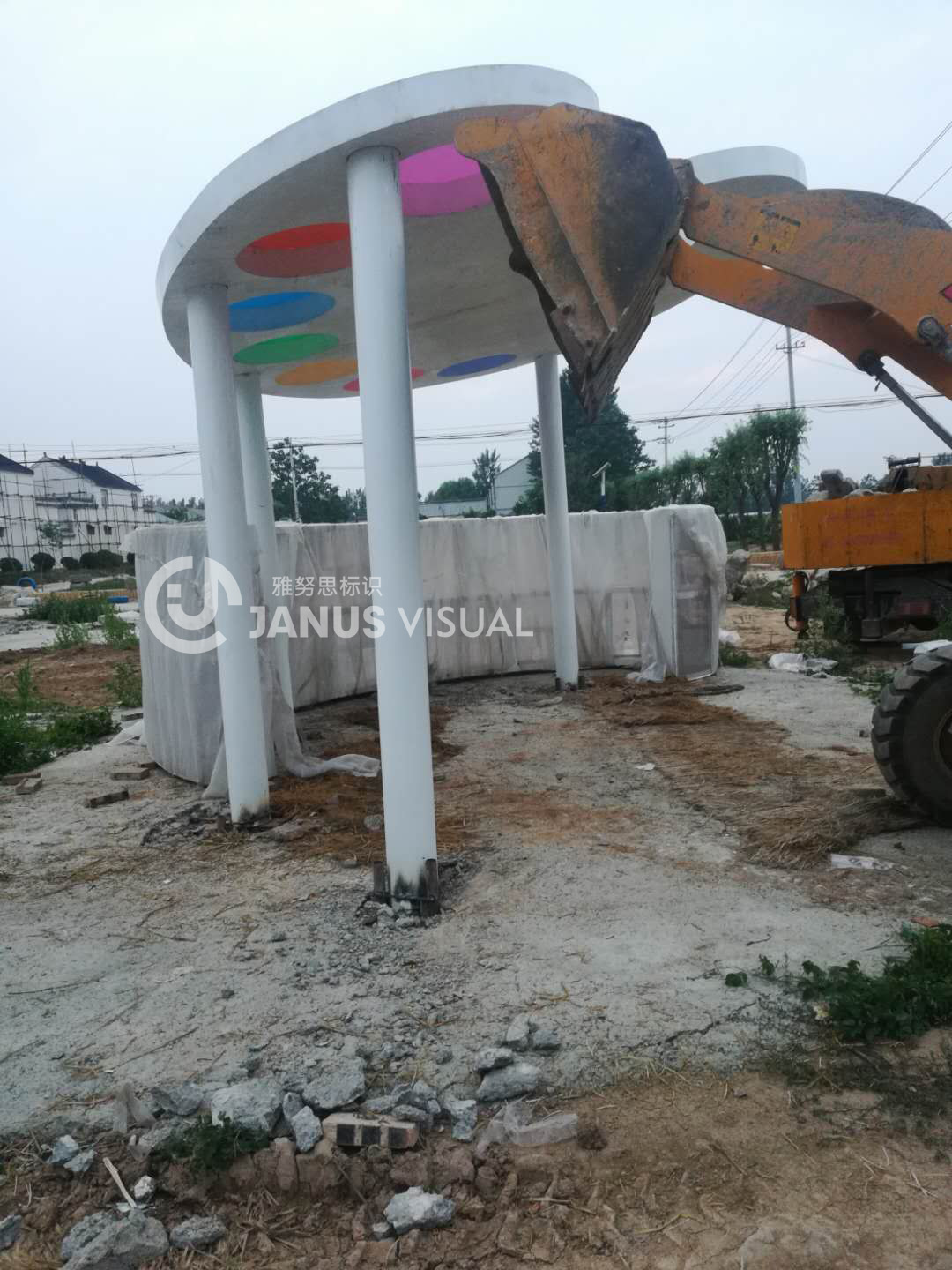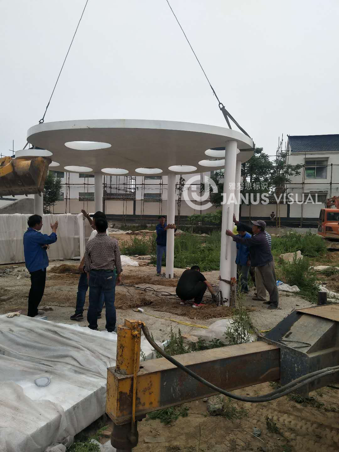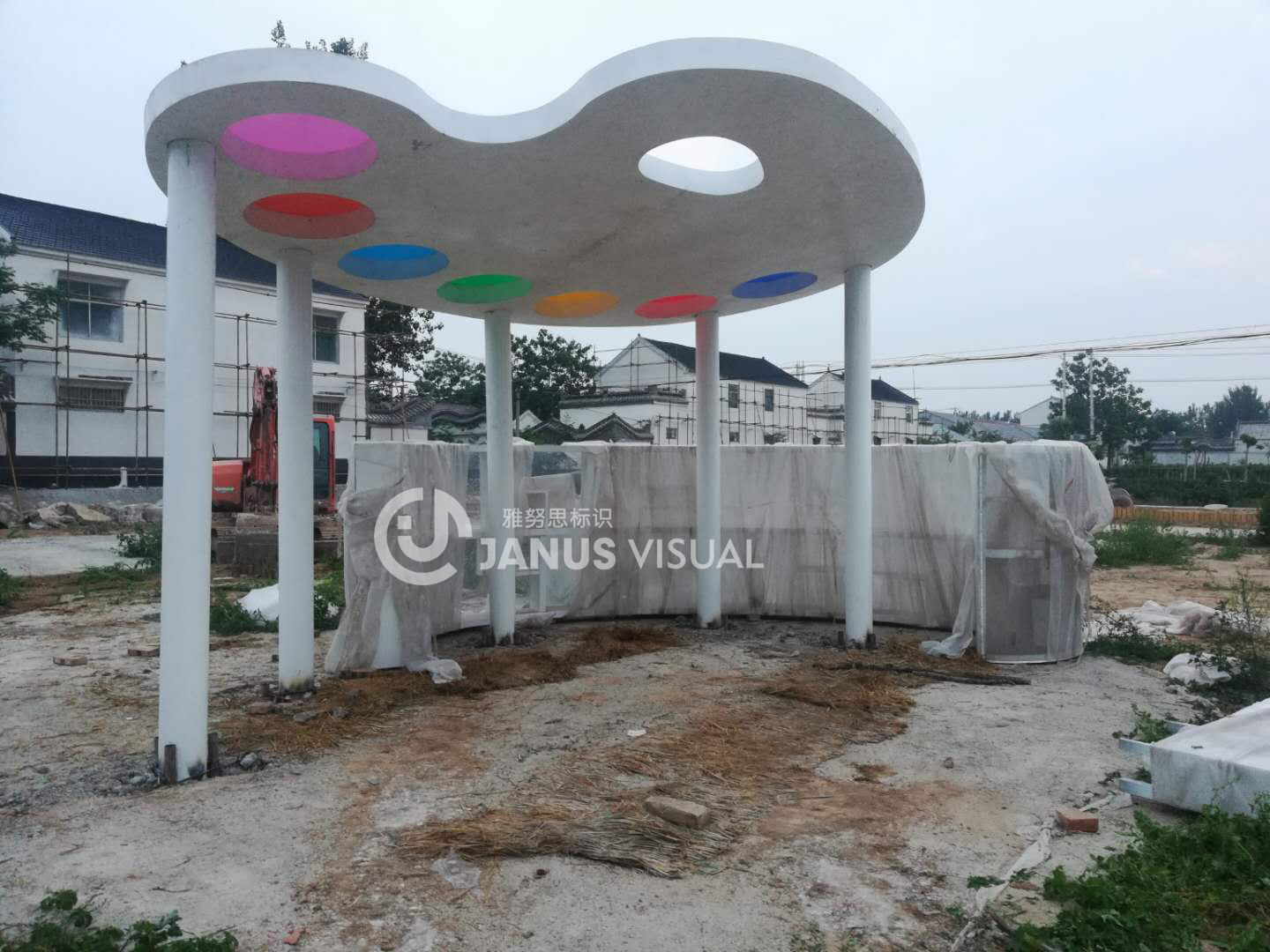 漢王景觀雕塑調色盤已完工出廠,正在安裝中! 6月30日,雅努思文化發展有限公司施工小組成員趕往漢王,完成景觀雕塑調色盤的安裝工作。現場負責人員一再強調“在確保安穩的情況下,一定要把效果做到位”。